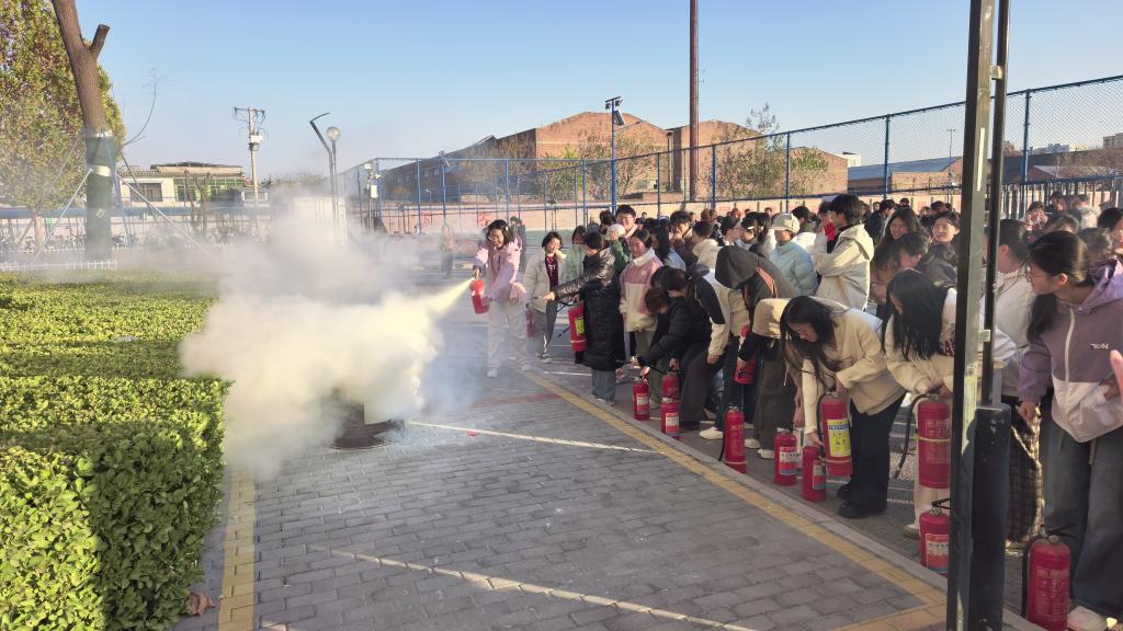 随后,一级注册消防工程师刘宇在新教学楼报告厅以《加强消防安全 强化消防意识》为题作了消防知识讲座,内容涵盖火灾发生的原因及防范要点。讲座结束后,现场师生进行了模拟火灾逃生撤离,并在新教学楼南侧开展灭火实操演练。